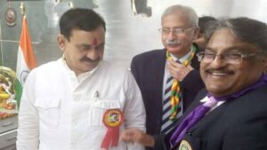 गृह मंत्री डॉ. मिश्रा को लगाया बैज